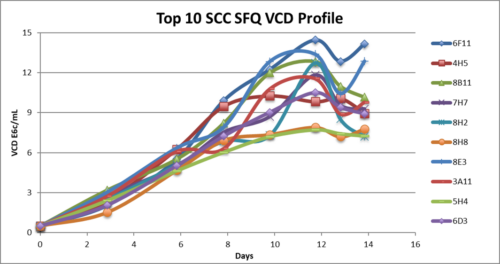- Evaluated single cell clones in fed-batch shake flask